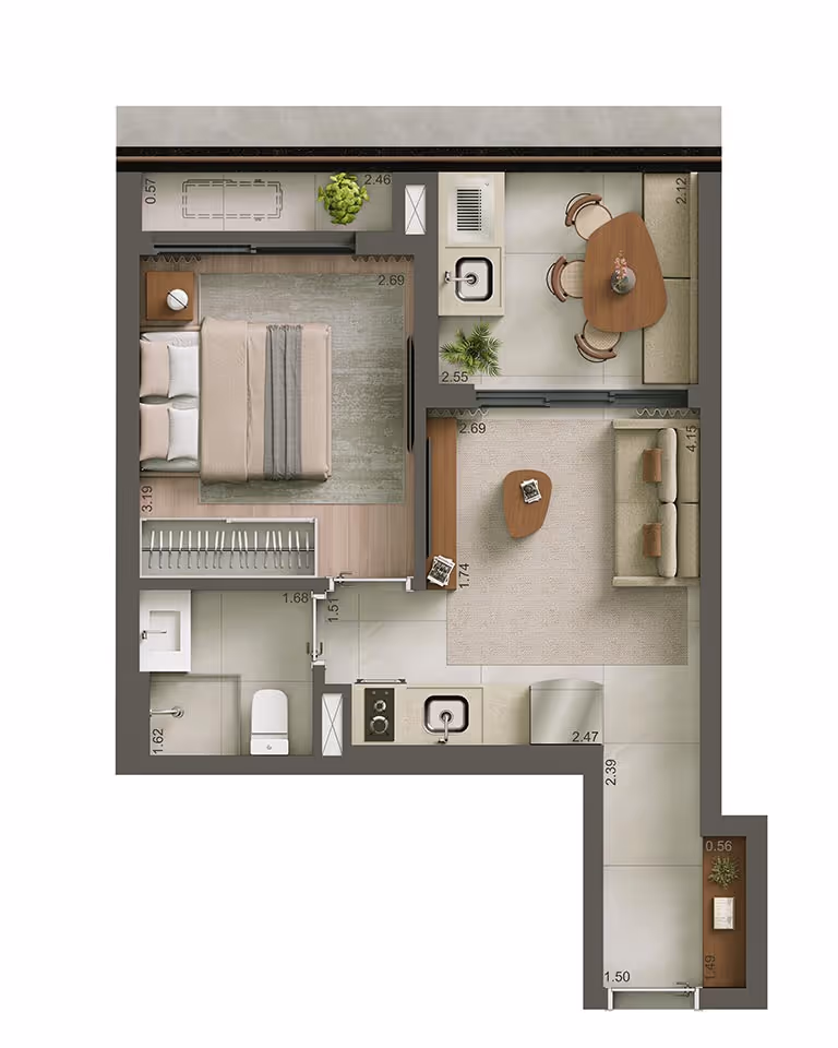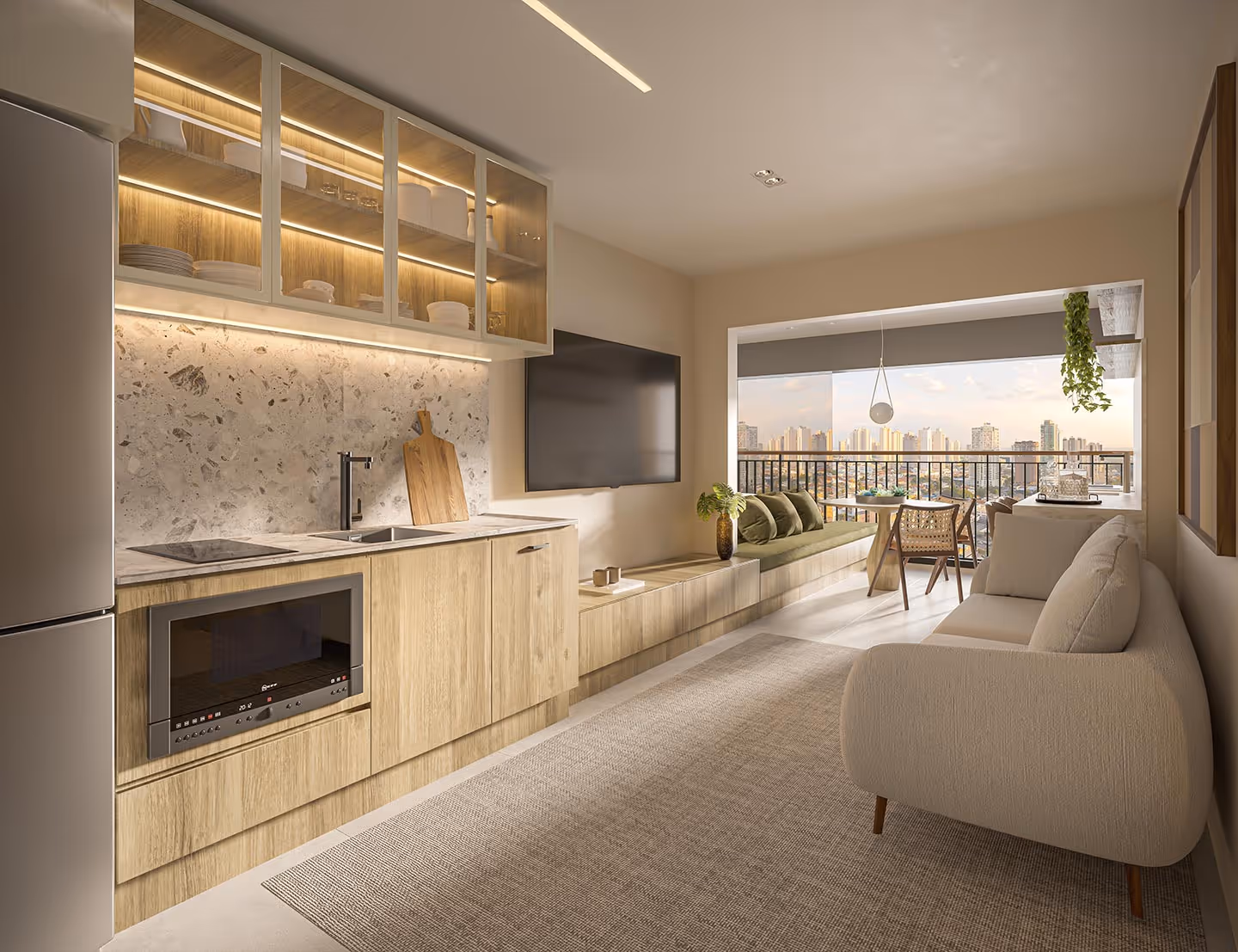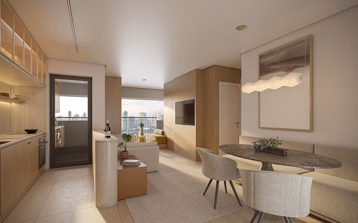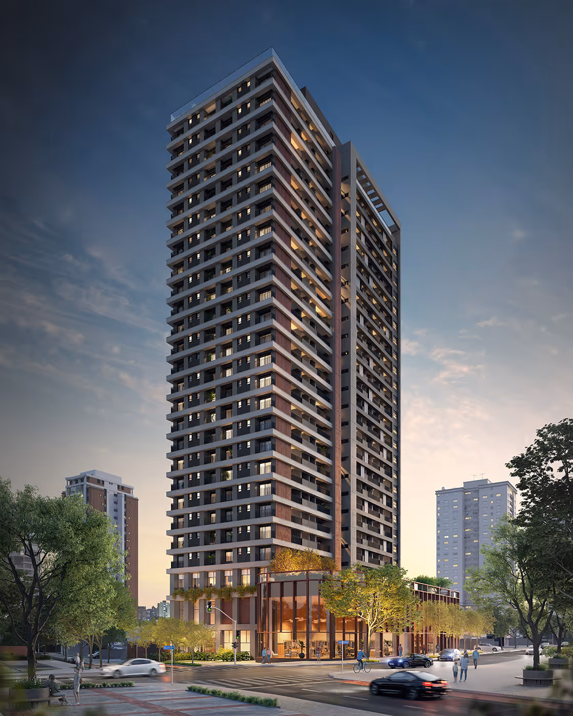 Apartamentos modernos de 39 a 94m², que traduzem o espírito cosmopolita paulistano.