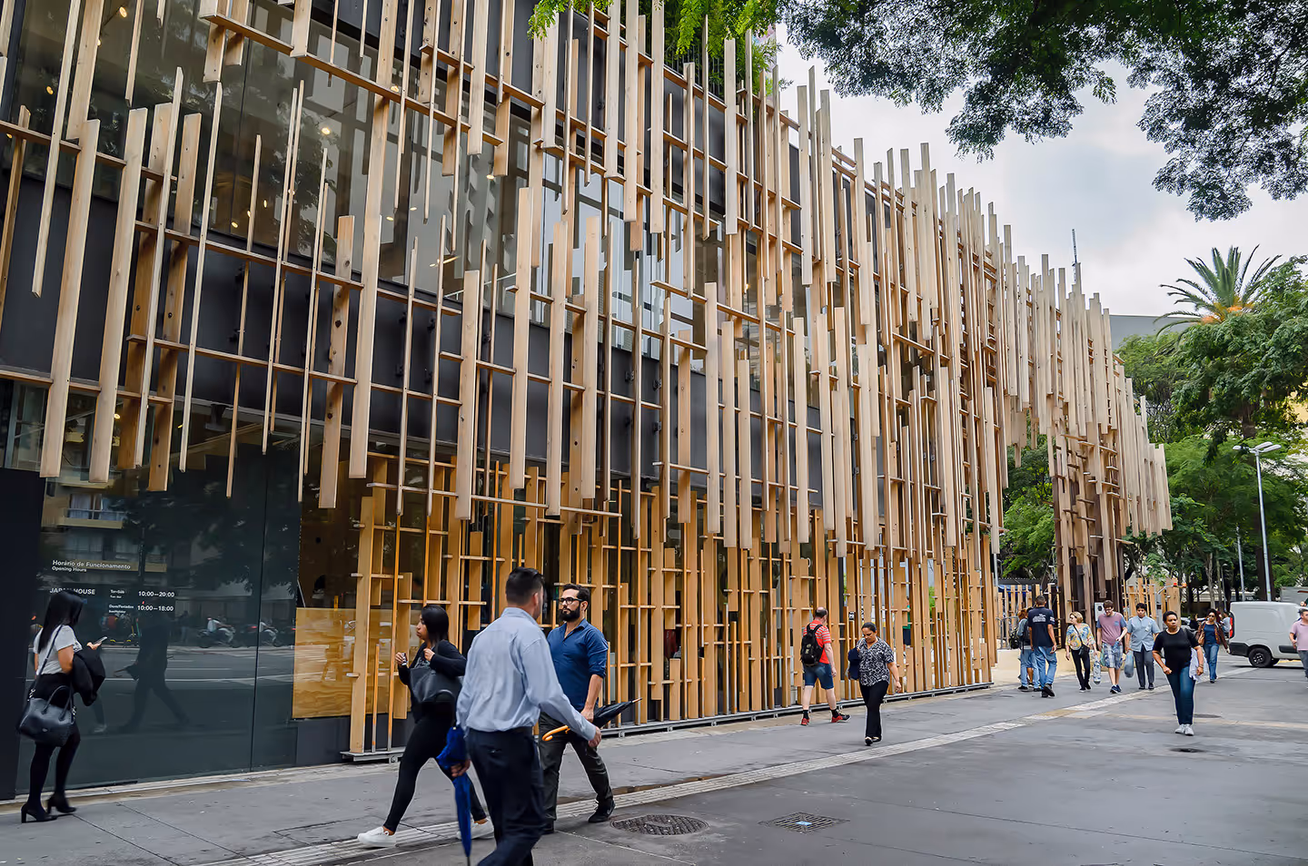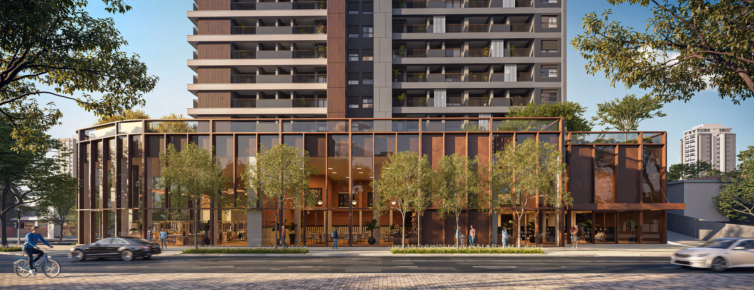 No encontro da Alameda Santos com a Rua Rafael de Barros, o Alameda 45 nasce integrado ao entorno vibrante da Av. Paulista. A esquina comercial envidraçada convida à cidade, enquanto a torre recuada abriga lazer elevado com vista e privacidade. Piscina, academia, spa e rooftop compõem espaços de convivência e contemplação. A arquitetura é pura e elegante, revelando uma grelha estrutural que traduz equilíbrio entre urbanidade e conforto.