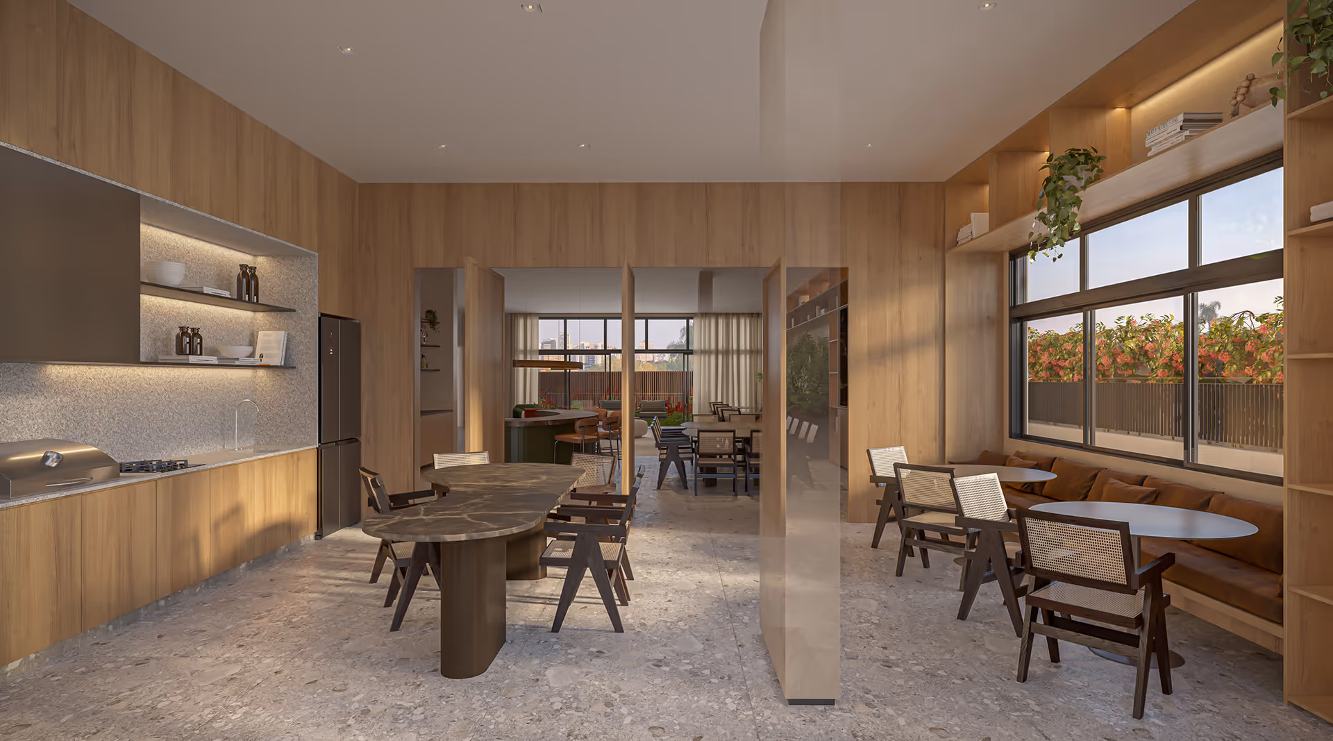 O paisagismo de André Paoliello propõe um diálogo entre natureza e cidade. Áreas verdes no térreo e nos pavimentos de lazer formam um jardim urbano contemporâneo, que convida à convivência e à contemplação. Em harmonia com a arquitetura, o projeto valoriza o verde como protagonista, criando uma atmosfera acolhedora, sofisticada e integrada à metrópole.
