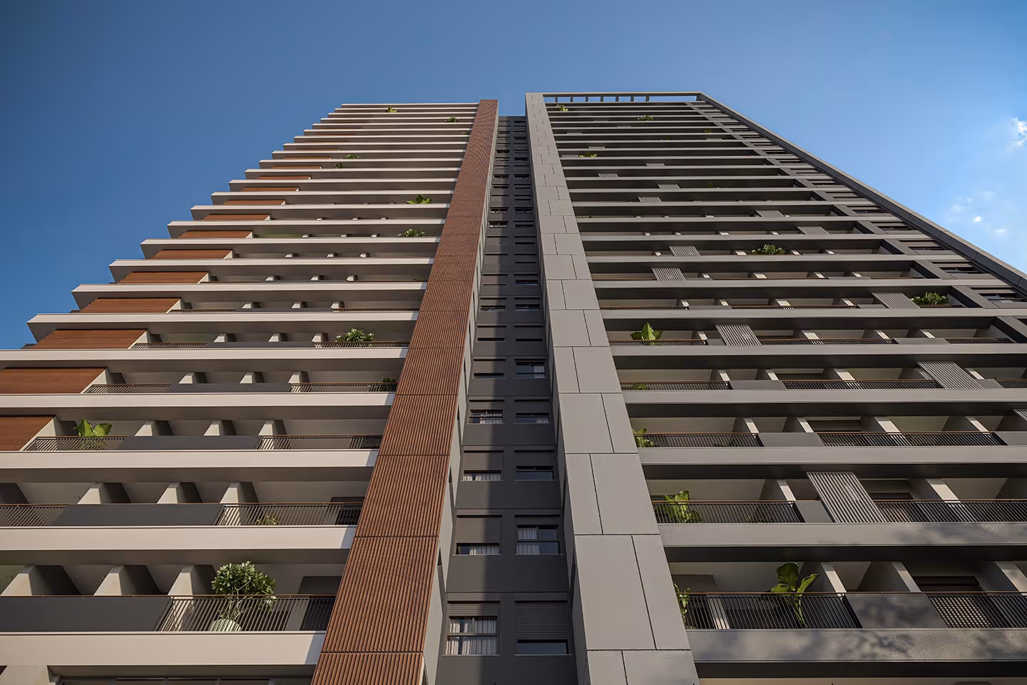 No encontro da Alameda Santos com a Rua Rafael de Barros, o Alameda 45 nasce integrado ao entorno vibrante da Av. Paulista. A esquina comercial envidraçada convida à cidade, enquanto a torre recuada abriga lazer elevado com vista e privacidade. Piscina, academia, spa e rooftop compõem espaços de convivência e contemplação. A arquitetura é pura e elegante, revelando uma grelha estrutural que traduz equilíbrio entre urbanidade e conforto.